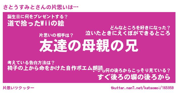 | ヒーロー風カッコイイあだ名 | 『スーパーサトウスミト』『魔戒騎士サト』 |