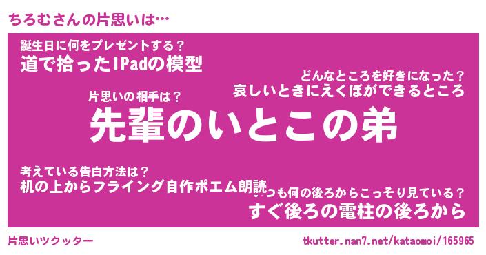 | ヘコむあだ名 | 『ちろにゅー』『牛乳』『ちろお』 |