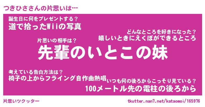 | ヘコむあだ名 | 『つきもー』『牛乳』『つきを』 |