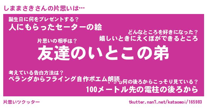 | ヘコむあだ名 | 『しまにゅー』『酢こんぶ』『しまを』 |