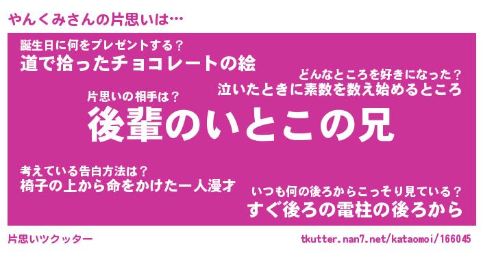 | 胡散臭い通販商品みたいなあだ名 | 『モテモテ間違いなし水晶球…その名も「やんくみ」』 |