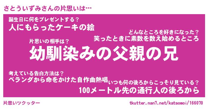 | 男性向けラノベタイトル風あだ名 | 『さとういずみの憂鬱』 |