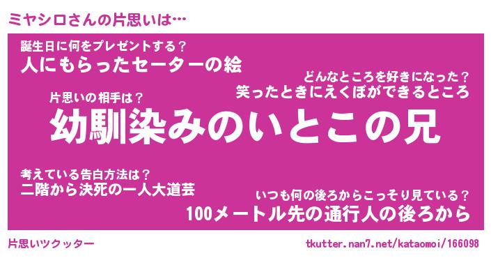 | ファンタジー風あだ名 | 『ミヤフェル』『エターナルミヤシロー』 |