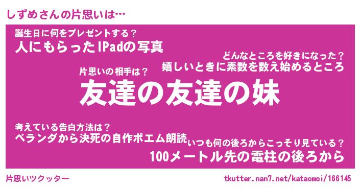 | ポケモン風あだ名 | 『シズチュウ』『シズメダネ』 |