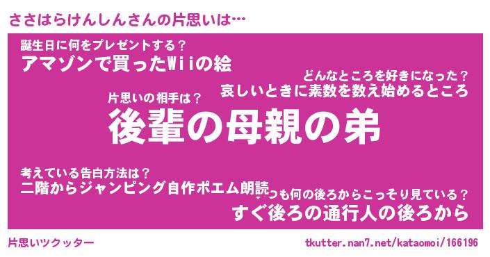 | 胡散臭い通販商品みたいなあだ名 | 『億万長者になれるブレスレット…その名も「ささはらけんしん」』 |
