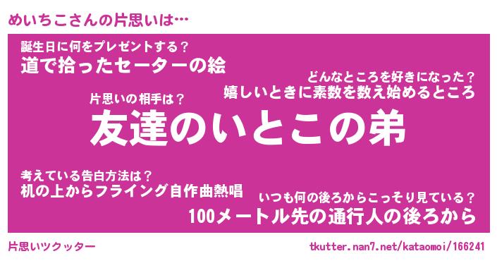 | ヘコむあだ名 | 『めいにゅー』『豆乳』『めいっちょ』 |