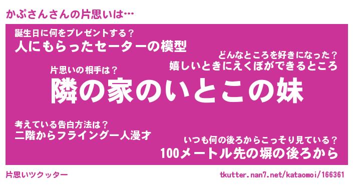 | ヘコむあだ名 | 『かぷもー』『酢こんぶ』『かぷ太郎』 |