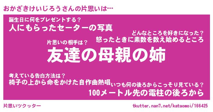 | 肩書あだ名 | 『おかざきけいじろう社長』 |