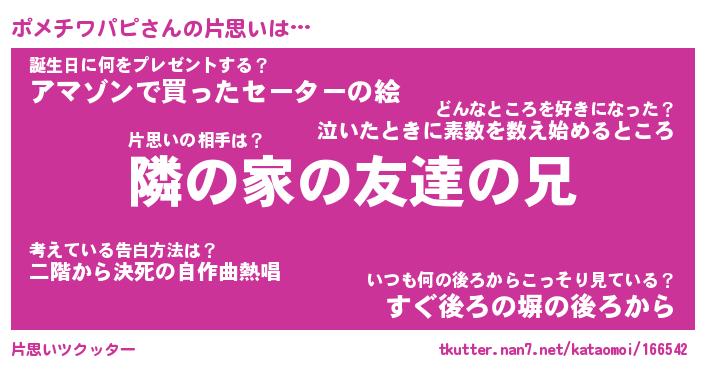 | 伝説のあだ名 | 『伝説のスナイパーポメチワパピ』 |