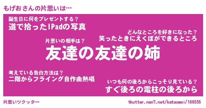 | ヘコむあだ名 | 『もげっふぃ~』『豆乳』『もげを』 |