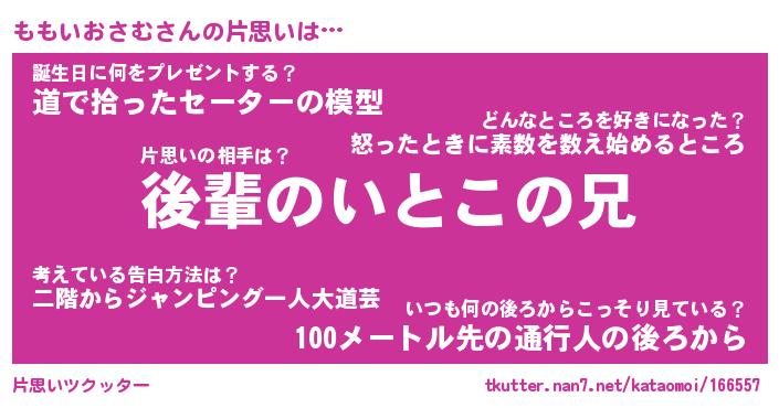 | 胡散臭い通販商品みたいなあだ名 | 『モテモテ間違いなし水晶球…その名も「ももいおさむ」』 |