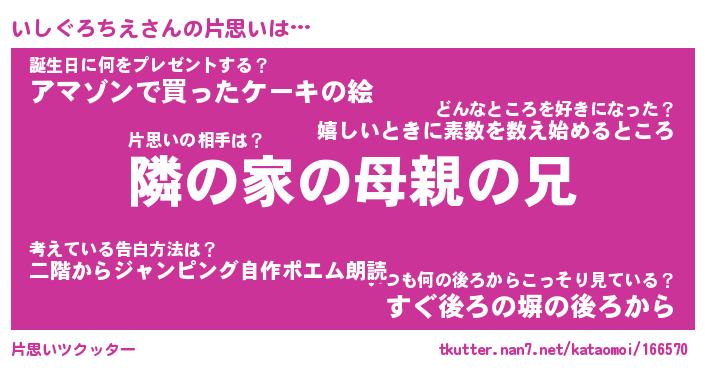 | 胡散臭い通販商品みたいなあだ名 | 『必ず成功するブレスレット…その名も「いしぐろちえ」』 |