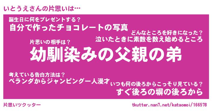 | 胡散臭い通販商品みたいなあだ名 | 『必ず成功するブレスレット…その名も「いとうえ」』 |