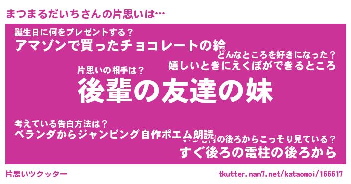 | 胡散臭い通販商品みたいなあだ名 | 『モテモテ間違いなし霊験あらたかなお札…その名も「まつまるだいち」』 |