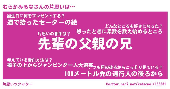 | 胡散臭い通販商品みたいなあだ名 | 『モテモテ間違いなし水晶球…その名も「むらかみるな」』 |