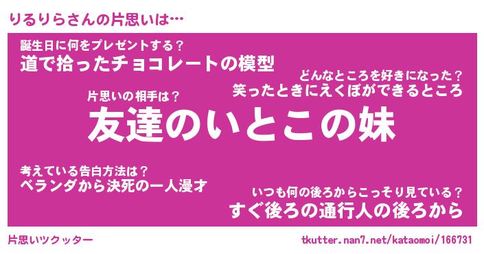 | ツイッター | りるりらさんのツイッターID『fukuyoka_idle』 |