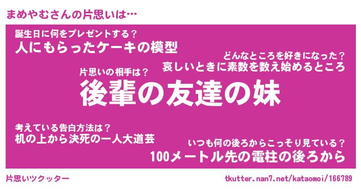 | 意味不明あだ名 | 『ペロリンまめやむ』『永久保存まめやむ』 |