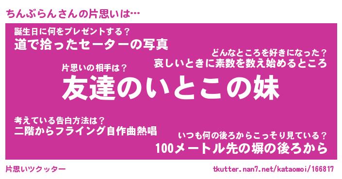 | ヘコむあだ名 | 『ちんにゅー』『豆乳』『ちんっ子』 |