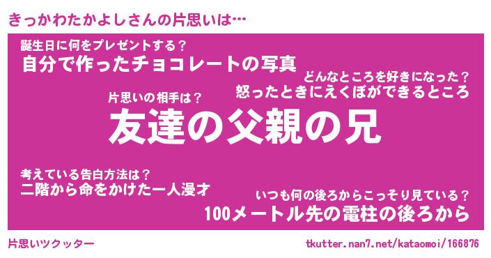 | 胡散臭い通販商品みたいなあだ名 | 『億万長者になれる水晶球…その名も「きっかわたかよし」』 |