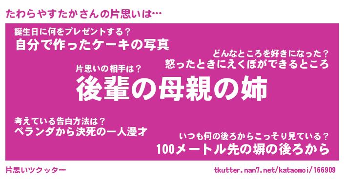 | ヘコむあだ名 | 『たわにー』『つくし』『たわお』 |