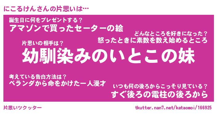 | ヘコむあだ名 | 『にこもー』『酢こんぶ』『にこを』 |