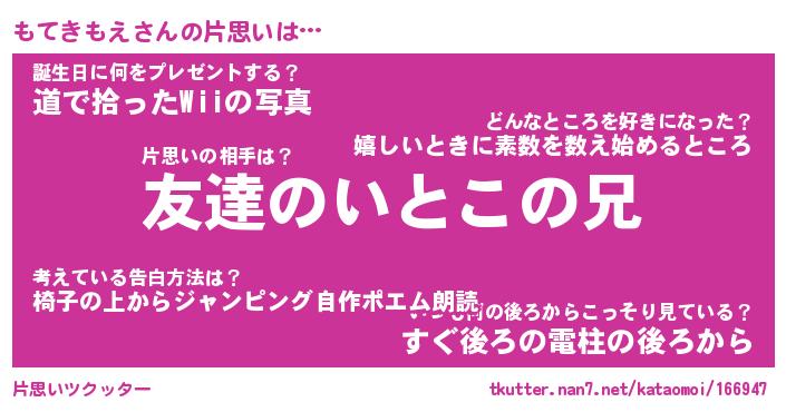 | ヘコむあだ名 | 『もてもー』『つくし』『もてお』 |