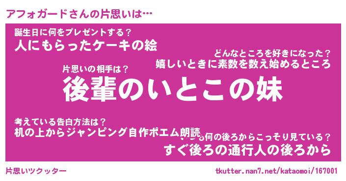 | ヘコむあだ名 | 『アフにゅー』『なまこ酢』 |