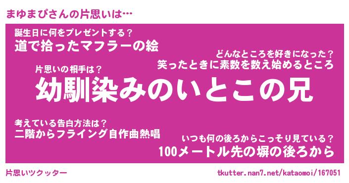 | ファンタジー風あだ名 | 『マユフェル』『エターナルマユマピー』 |