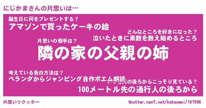 | ファンタジー風あだ名 | 『ニジフェル』『エターナルニジカマー』 |