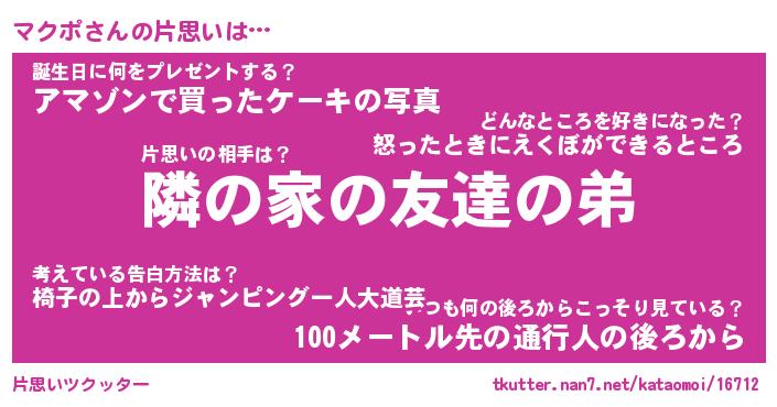 | 男性向けラノベタイトル風あだ名 | 『マクポの憂鬱』 |