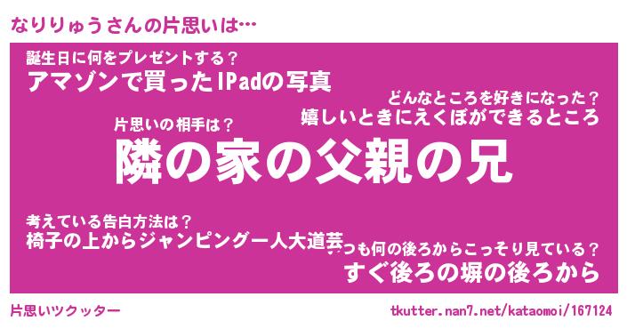 | 男性向けラノベタイトル風あだ名 | 『なりりゅうの憂鬱』 |