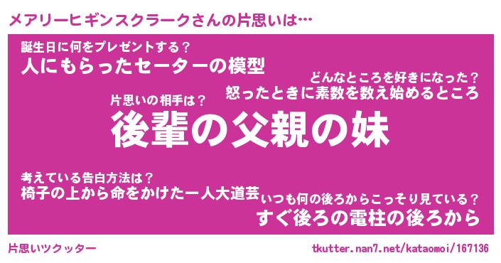 | 意味不明あだ名 | 『ペロリンメアリーヒギンスクラーク』 |