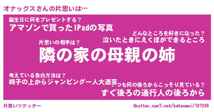 | ヘコむあだ名 | 『オナにー』『豆乳』『オナ太郎』 |