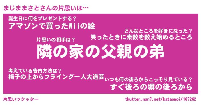 | 胡散臭い通販商品みたいなあだ名 | 『必ず成功する水晶球…その名も「まじままさと」』 |