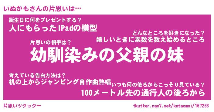 | 意味不明あだ名 | 『ペロリンいぬかも』『永久保存いぬかも』 |