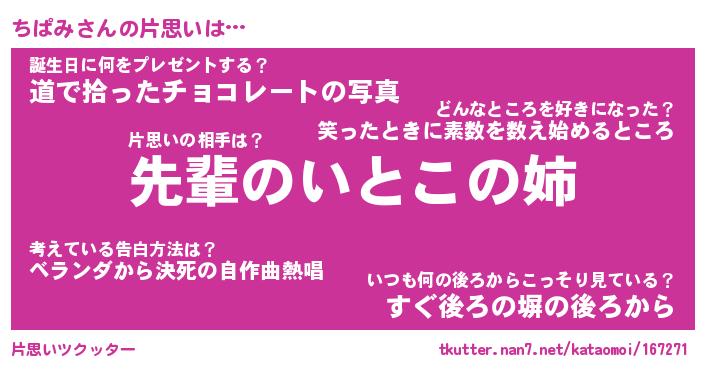 | ヘコむあだ名 | 『ちぱにゅー』『つくし』 |