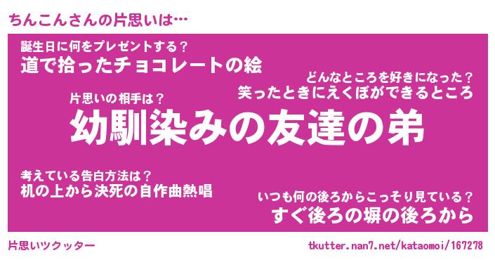 | ヘコむあだ名 | 『ちんっふぃ~』『牛乳』『ちんっぺ』 |