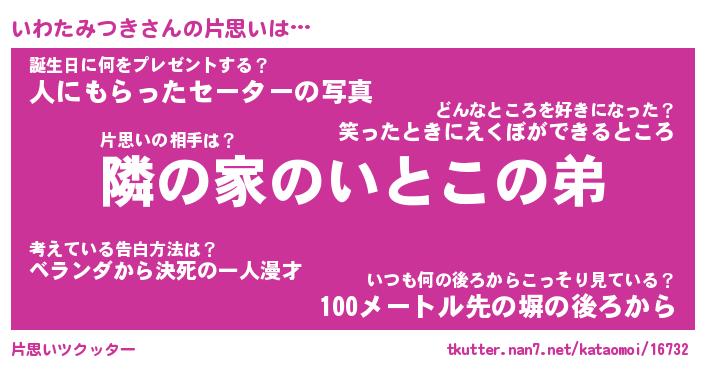 | ヒーロー風カッコイイあだ名 | 『スーパーイワタミツキ』『魔戒騎士イワ』 |