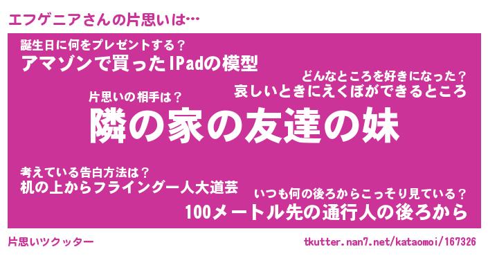 | 胡散臭い通販商品みたいなあだ名 | 『必ず成功する霊験あらたかなお札…その名も「エフゲニア」』 |