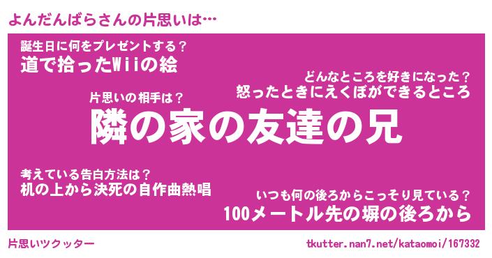 | 胡散臭い通販商品みたいなあだ名 | 『モテモテ間違いなし霊験あらたかなお札…その名も「よんだんばら」』 |