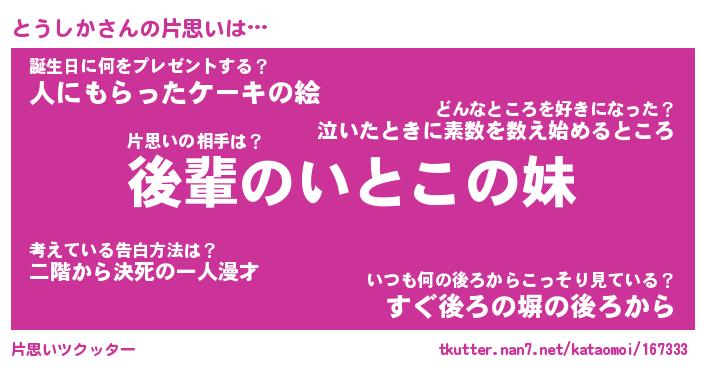 | 意味不明あだ名 | 『ペロリンとうしか』『永久保存とうしか』 |