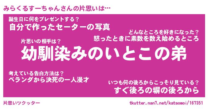 | ヘコむあだ名 | 『みらもー』『つくし』『みらっぺ』 |