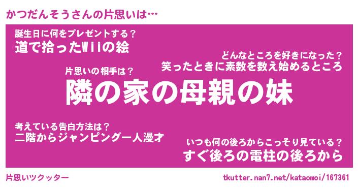 | 恥ずかしいあだ名 | 『プリティーかつだんそう』『かつっちょ』 |