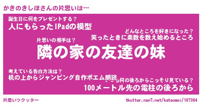 | ヘコむあだ名 | 『かきっふぃ~』『つくし』 |