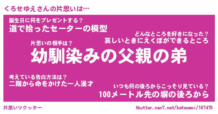 | 胡散臭い通販商品みたいなあだ名 | 『必ず成功する水晶球…その名も「くろせゆえ」』 |