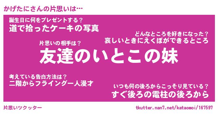 | ヘコむあだ名 | 『かげもー』『豆乳』『かげっぺ』 |
