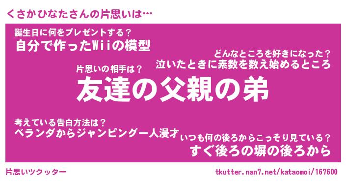 | 胡散臭い通販商品みたいなあだ名 | 『億万長者になれる水晶球…その名も「くさかひなた」』 |