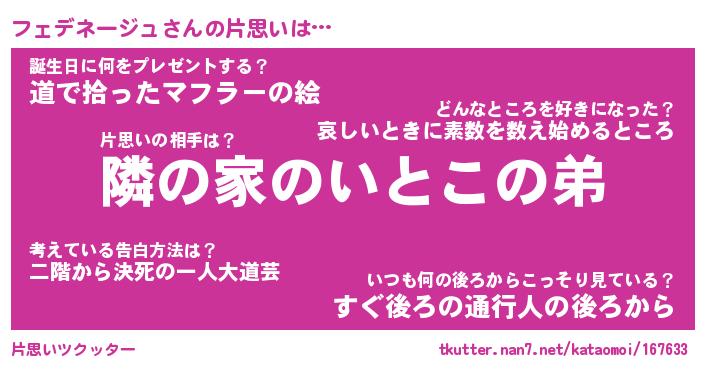 | ヘコむあだ名 | 『フェもー』『豆乳』『フェを』 |