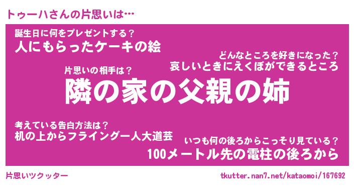 | 意味不明あだ名 | 『ペロリントゥーハ』『永久保存トゥーハ』 |
