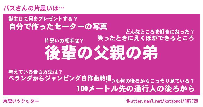 | ヘコむあだ名 | 『バスふぇ~』『つくし』『バス(笑)』 |